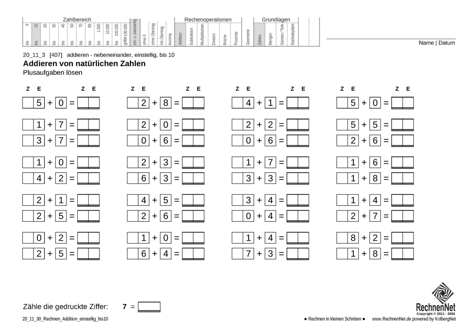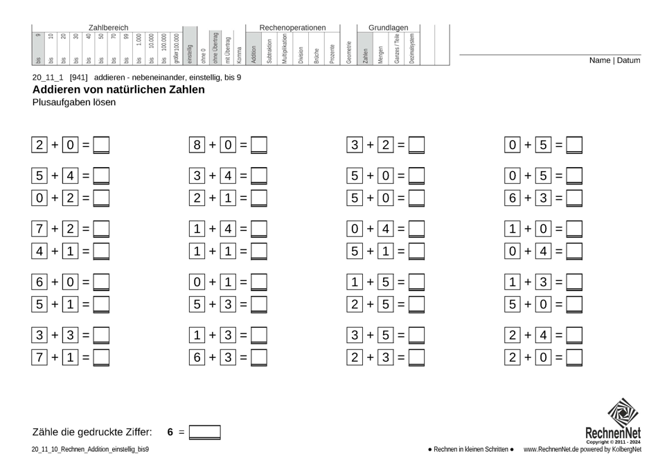 Aufgabenblatt: 20_11_1 Addition einstellig bis9172 KB