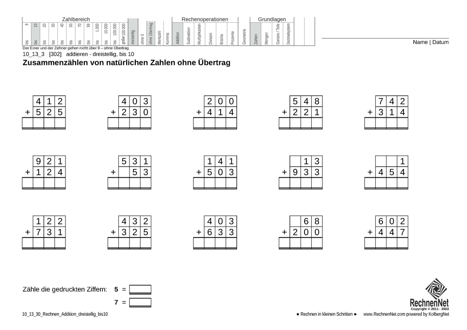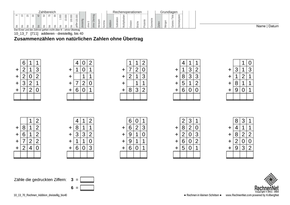Aufgabenblatt: 10_13_7 Addition dreistellig bis 40170 KB