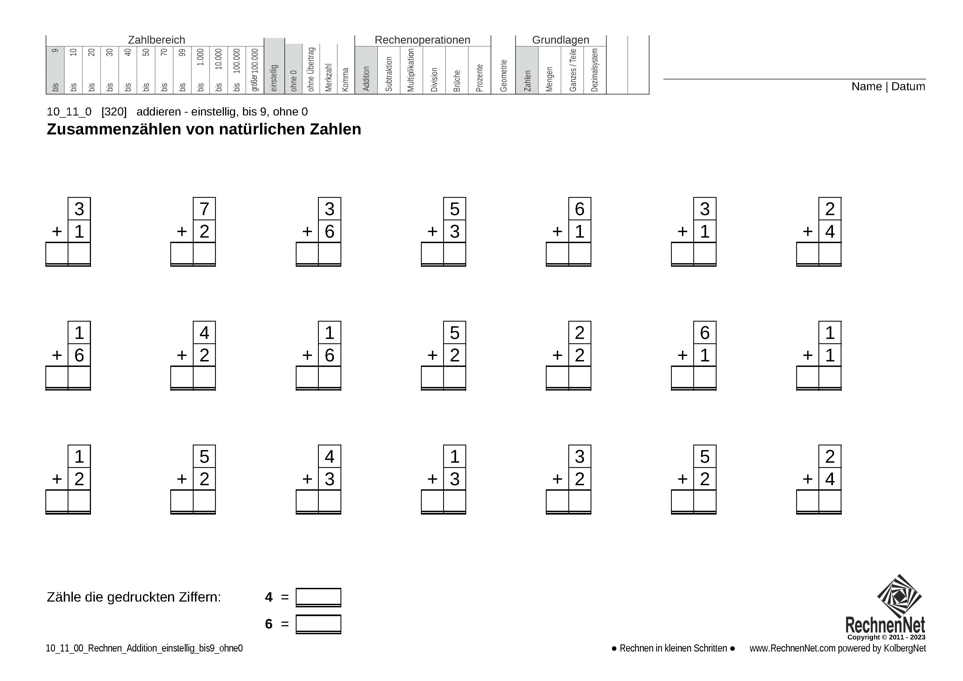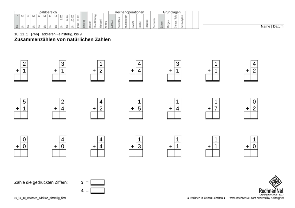 Aufgabenblatt: 10_11_2 Addition einstellig bis 9168 KB