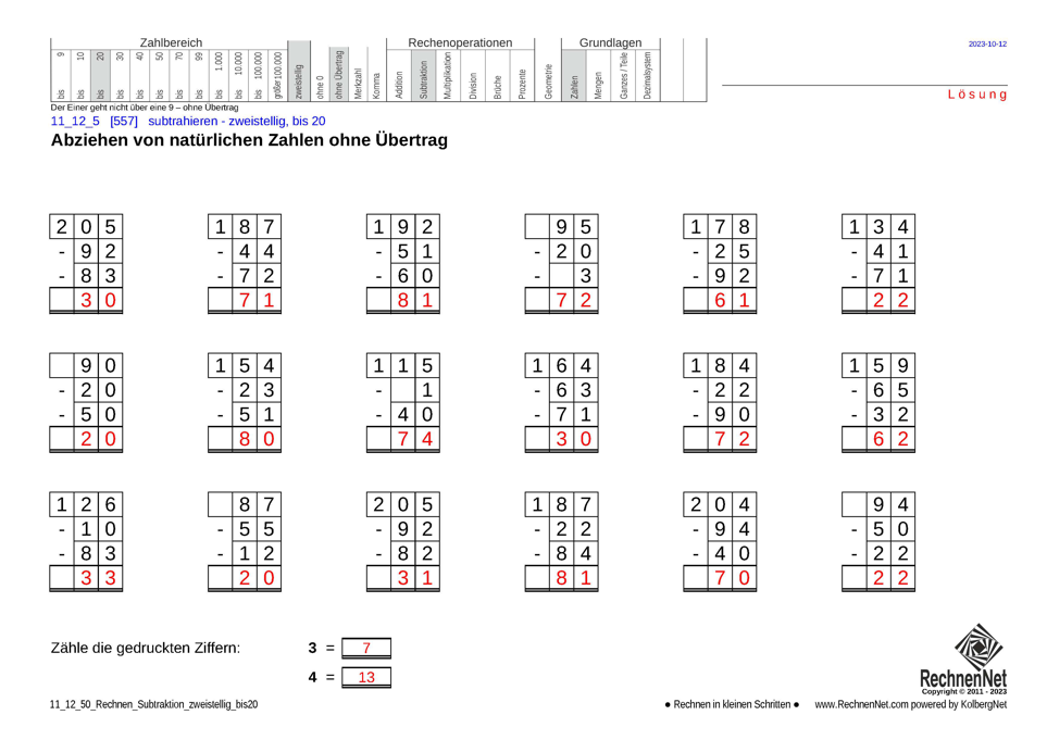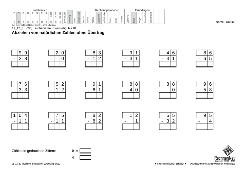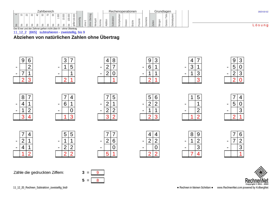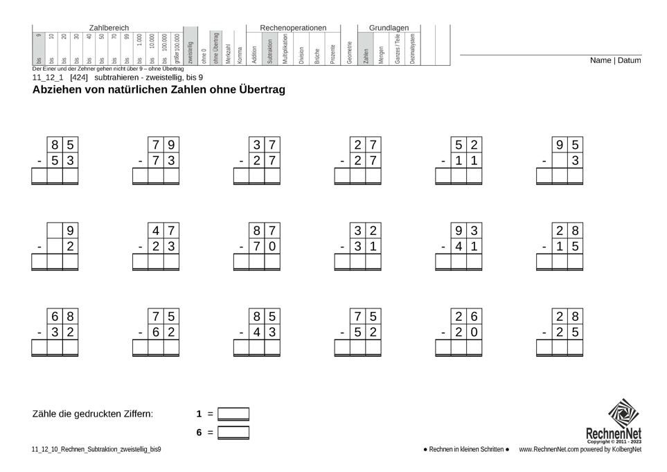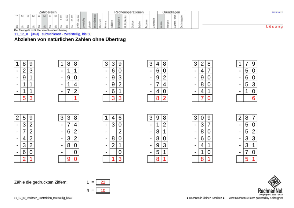 Aufgabenblatt: 11_12_8 Subtraktion zweistellig bis 50171 KB