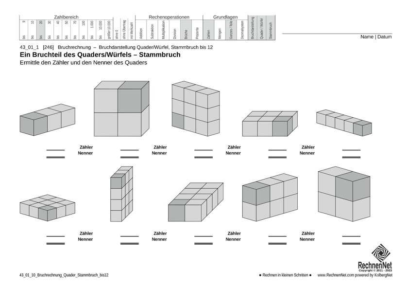 Aufgabenblatt: 43_01_1 Bruchrechnung Quader Stammbruch bis12303 KB