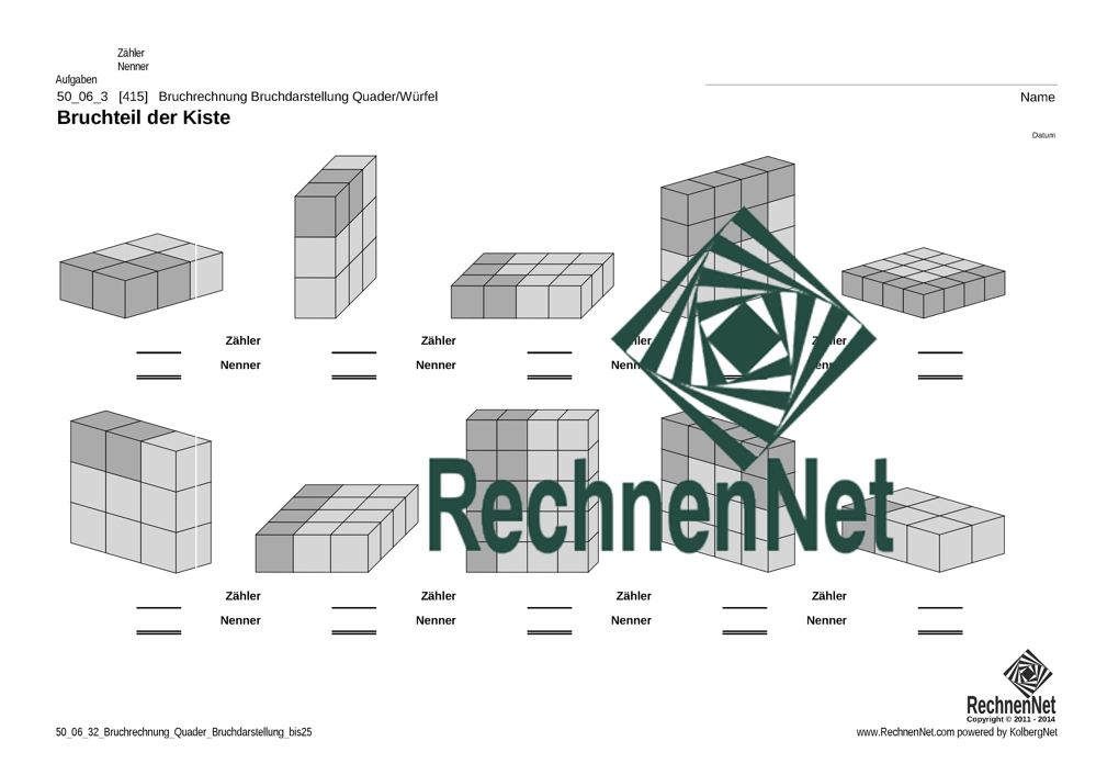 Bruchrechnung – Bruchdarstellung Quader/Würfel, Stammbruch