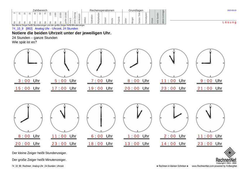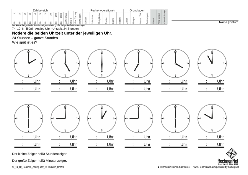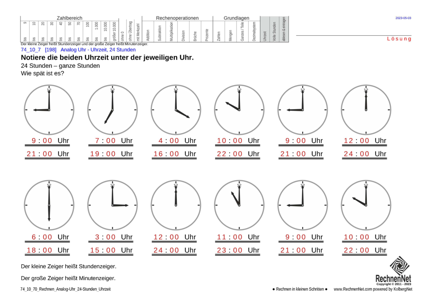 Aufgabenblatt: 74_10_3 Analog-Uhr 24-Stunden Uhrzeit 24412 KB